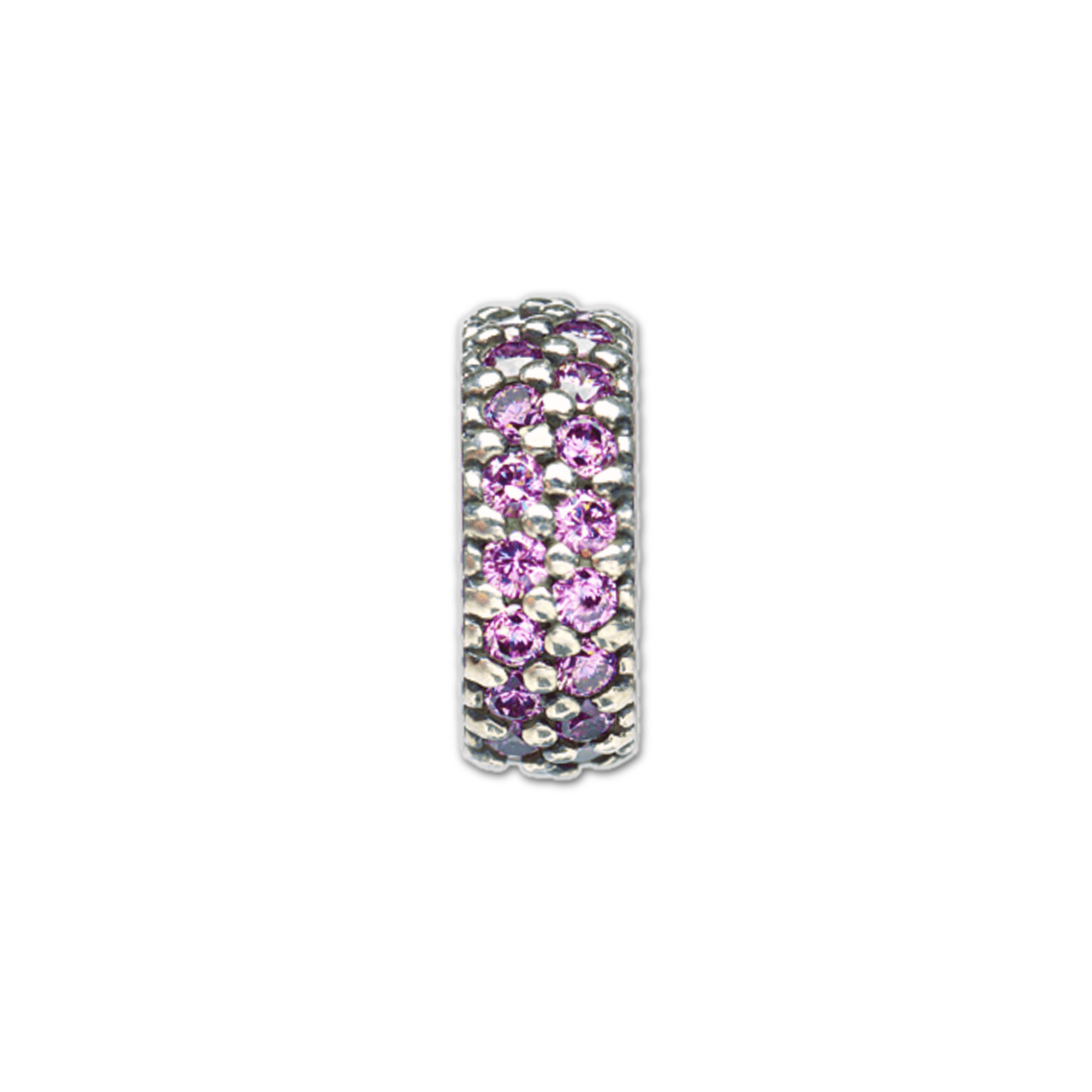 Rows of pink channel-set gems adorn this .925 sterling silver spacer.