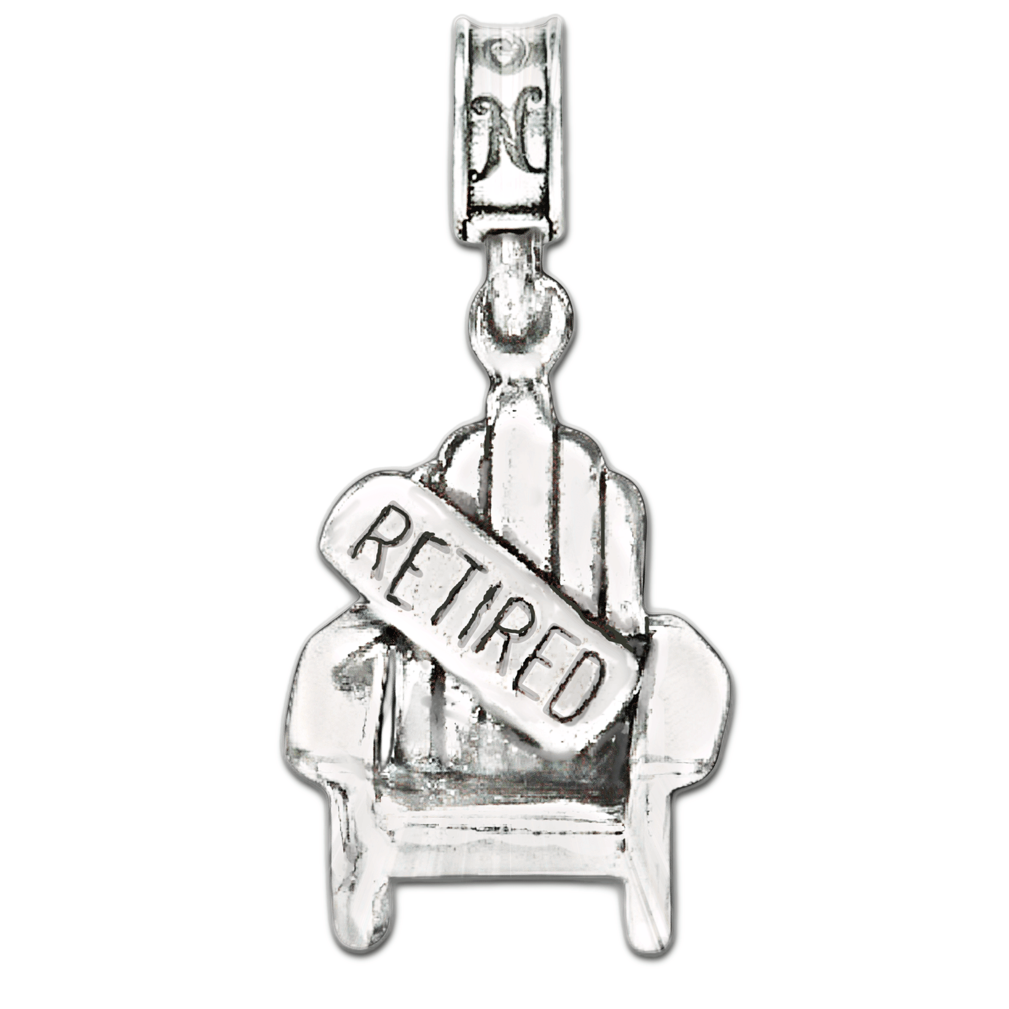 Celebrate the end of an era (although we know you have just moved on to a government contracting job) with our Adirondack chair charm with "Retired" across the back.