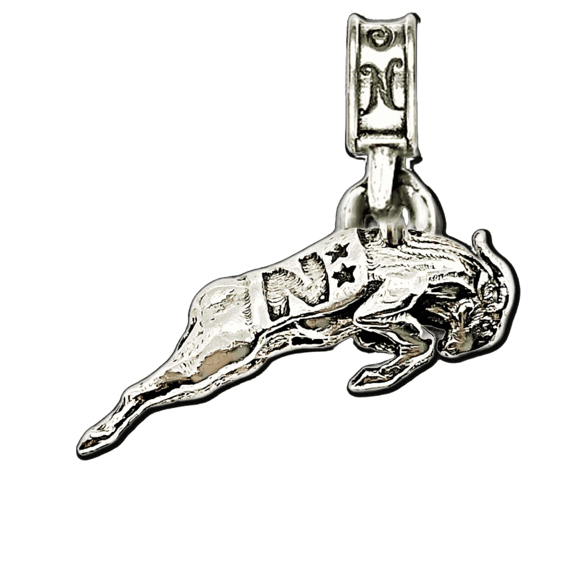 - Fine .925 cast silver, produced in California.