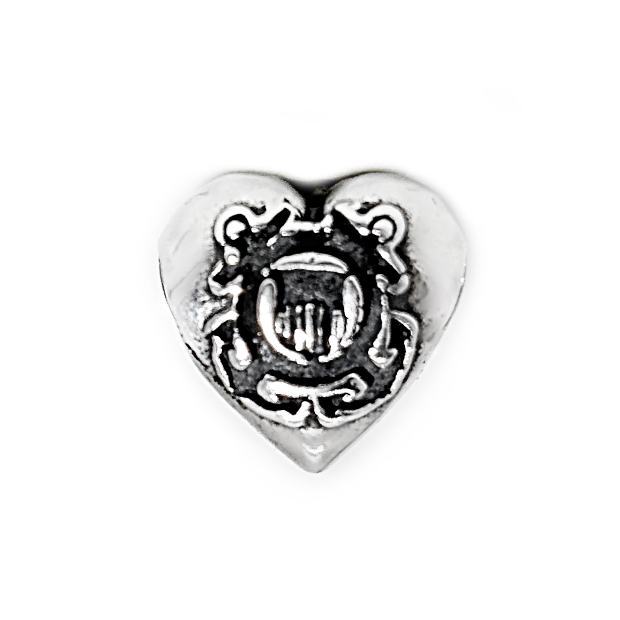 Our Hero at Heart Coast Guard Bead is a tribute to the brave men and women who serve in our Coast Guard and those that love them. Crafted with precision and care, these sterling silver charms are a perfect blend of elegance and patriotism. Each charm features a heart design, symbolizing the love and dedication of our military personnel, and is adorned with the emblem of the Coast Guard on the front and "Semper Paratus" on the back.