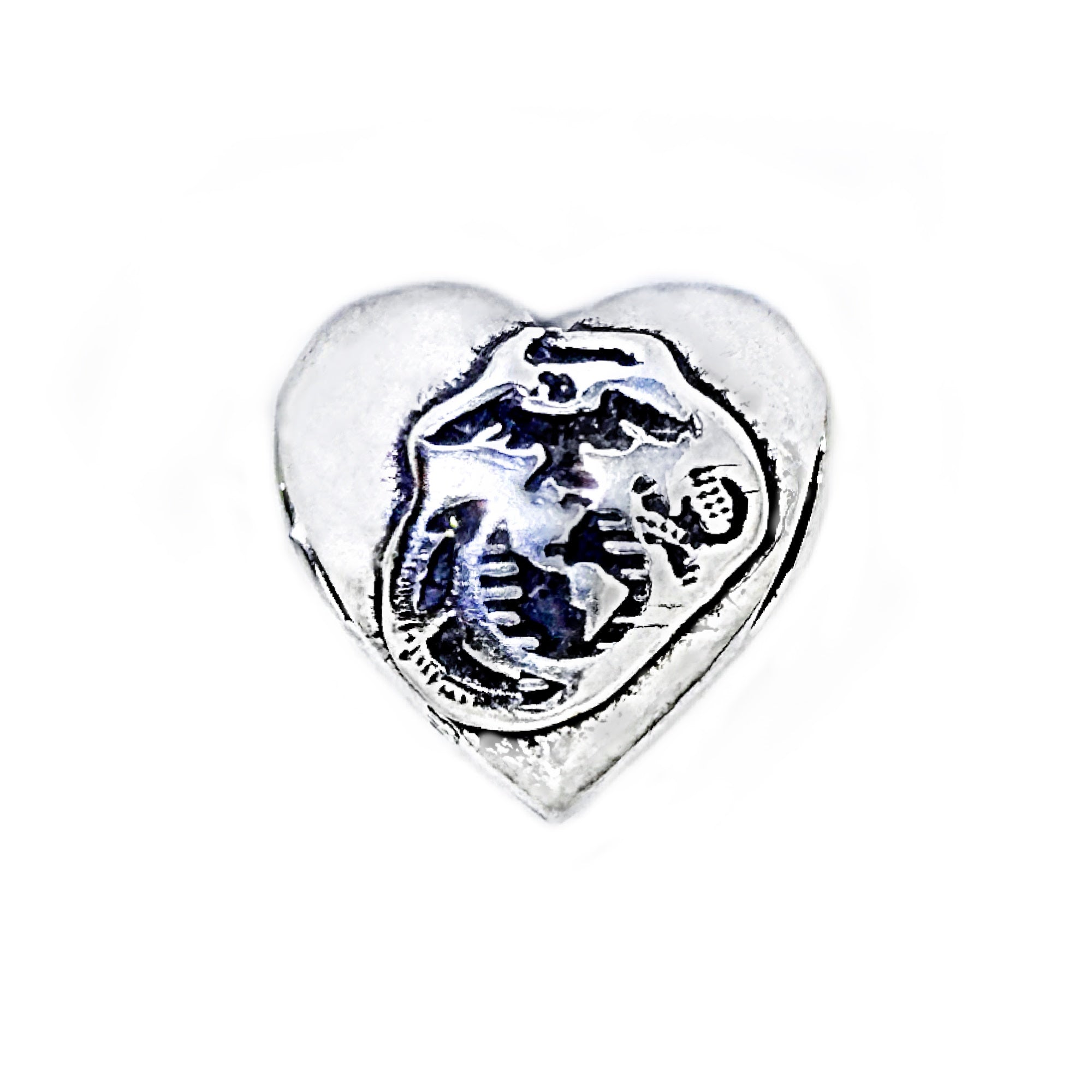 Our Hero at Heart Marine Corps Bead is a tribute to the brave men and women who serve in the USMC and those that love them. Crafted with precision and care, these sterling silver charms are a perfect blend of elegance and patriotism. Each charm features a heart design, symbolizing the love and dedication of our military personnel, and is adorned with the emblem of the Marine Corps on the front and "Semper Fidelis" on the back.