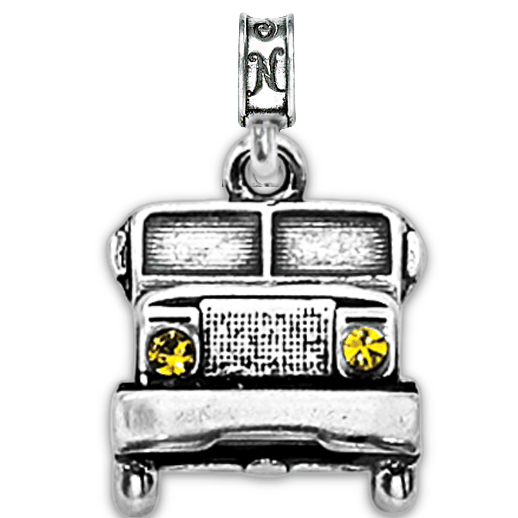 Motor T 5-Ton – Motor Transport, or Motor T, operators are responsible for operating and maintaining wheeled vehicles used to transport military cargo and personnel. One of the most recognizable vehicles they operate is the 5-Ton, a heavy cargo truck used by U.S. Armed Forces since the Vietnam war. Its name is derived from its 5-ton off-road cargo capacity, and our charm is a .925 sterling silver rendition of this ubiquitous truck, with 2 yellow gems for headlights.